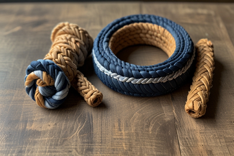 Cut long denim strips (about 2″ wide) and braid them tightly. Tie knots at both ends or sew them for durability. Make a thicker toy by braiding three braids together. It’s chew-proof, washable, and your pup will love it. Read here for full instructions to make these dog toys: