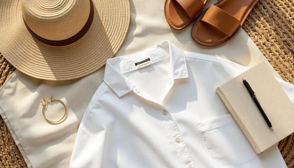 A relaxed-fit linen shirt is my go-to. I wear mine open over a tank, buttoned and tucked into jeans, or tied over a sundress. They’re lightweight and instantly make an outfit feel more styled.
